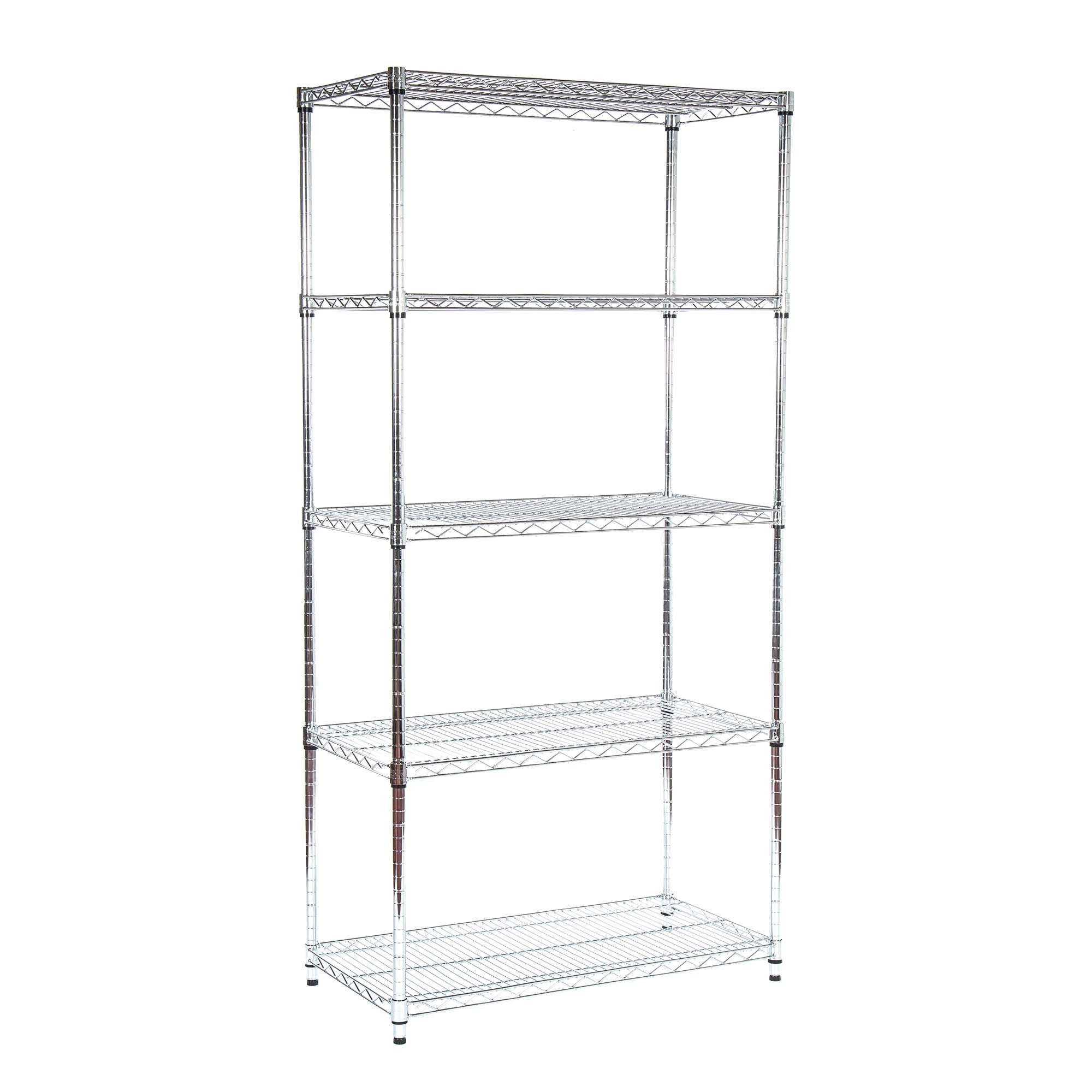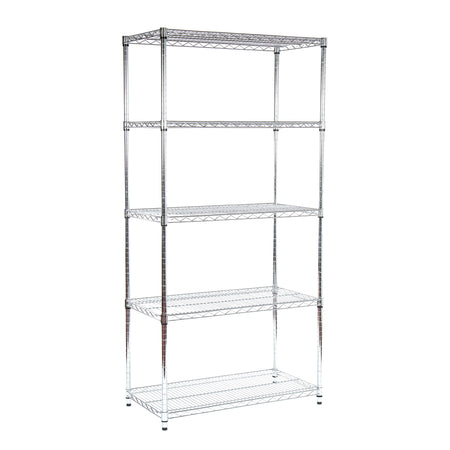 Kit de rangement d'angle chromé robuste à 5 niveaux, 100 kg UDL par étagère - 1838 mm H x 907 mm L x 457 mm P
