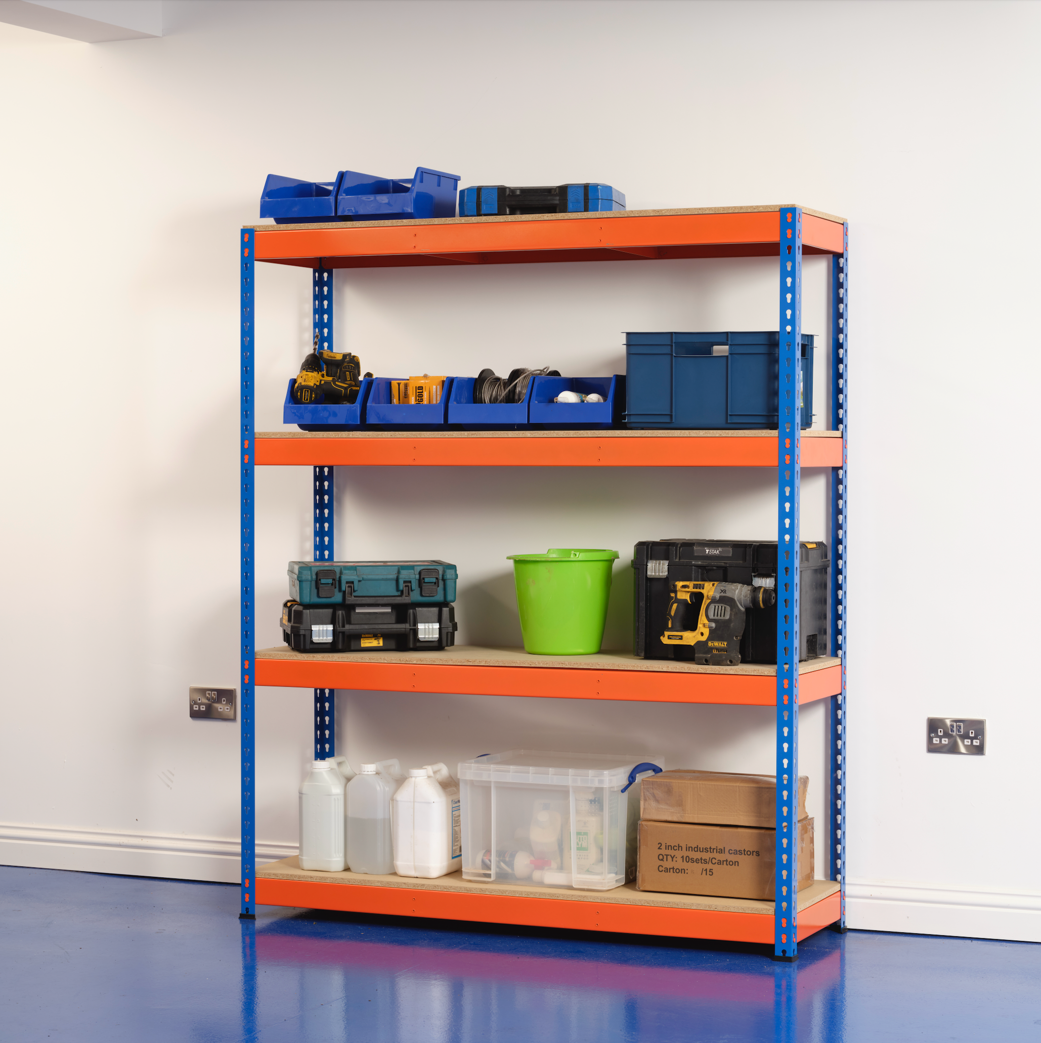 • Finition élégante : Le revêtement en poudre bleu et orange de l'acier confère aux rayonnages un aspect professionnel et industriel tout en offrant une protection supplémentaire contre la corrosion.