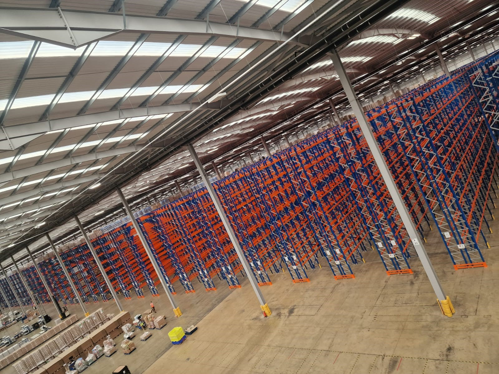 Wide aisle pallet racking features wider aisles that allow forklifts and pallet trucks to move easily between the racking. It looks like a standard open shelving structure with large gaps between rows and ensures 100% accessibility to each pallet. Ideal for warehouses that need quick stock retrieval and flexibility.