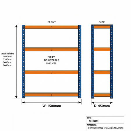 Parfait pour organiser votre garage, buanderie ou espace de travail, le MR00837L allie fonctionnalité, robustesse et conception intelligente dans un système de rayonnage compact et de grande capacité.